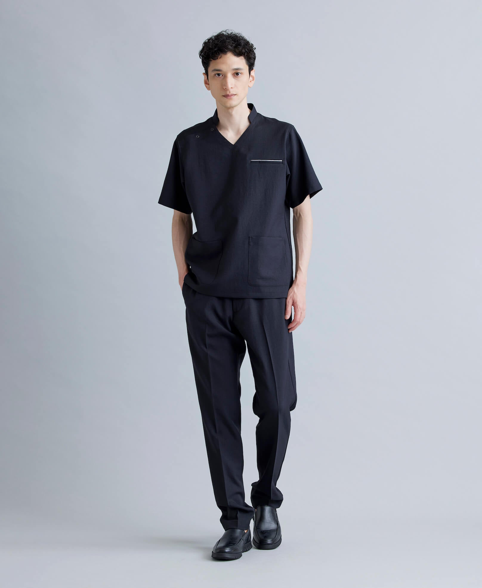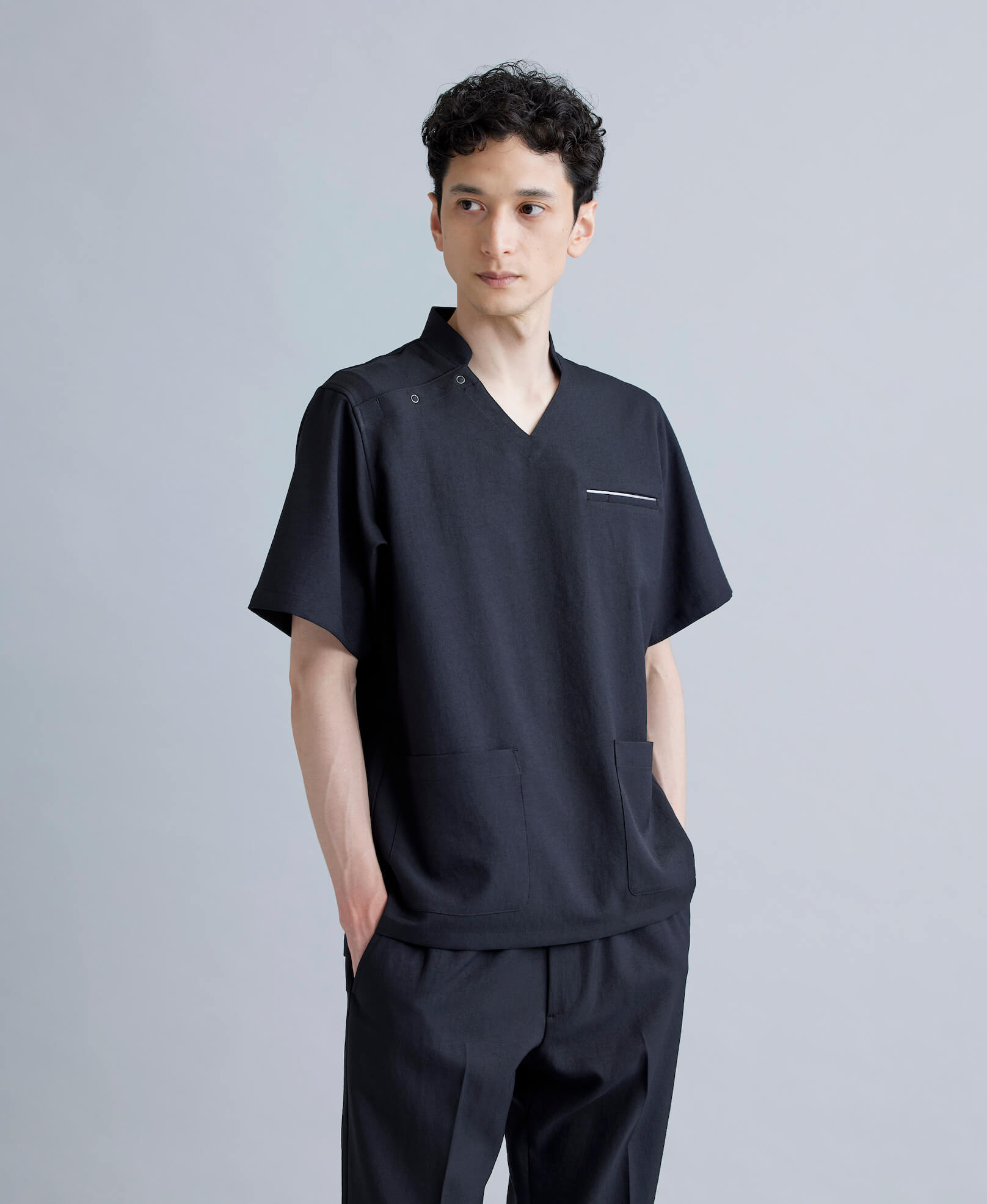 メンズ ベーシック スタンドカラー スクラブシャツ
